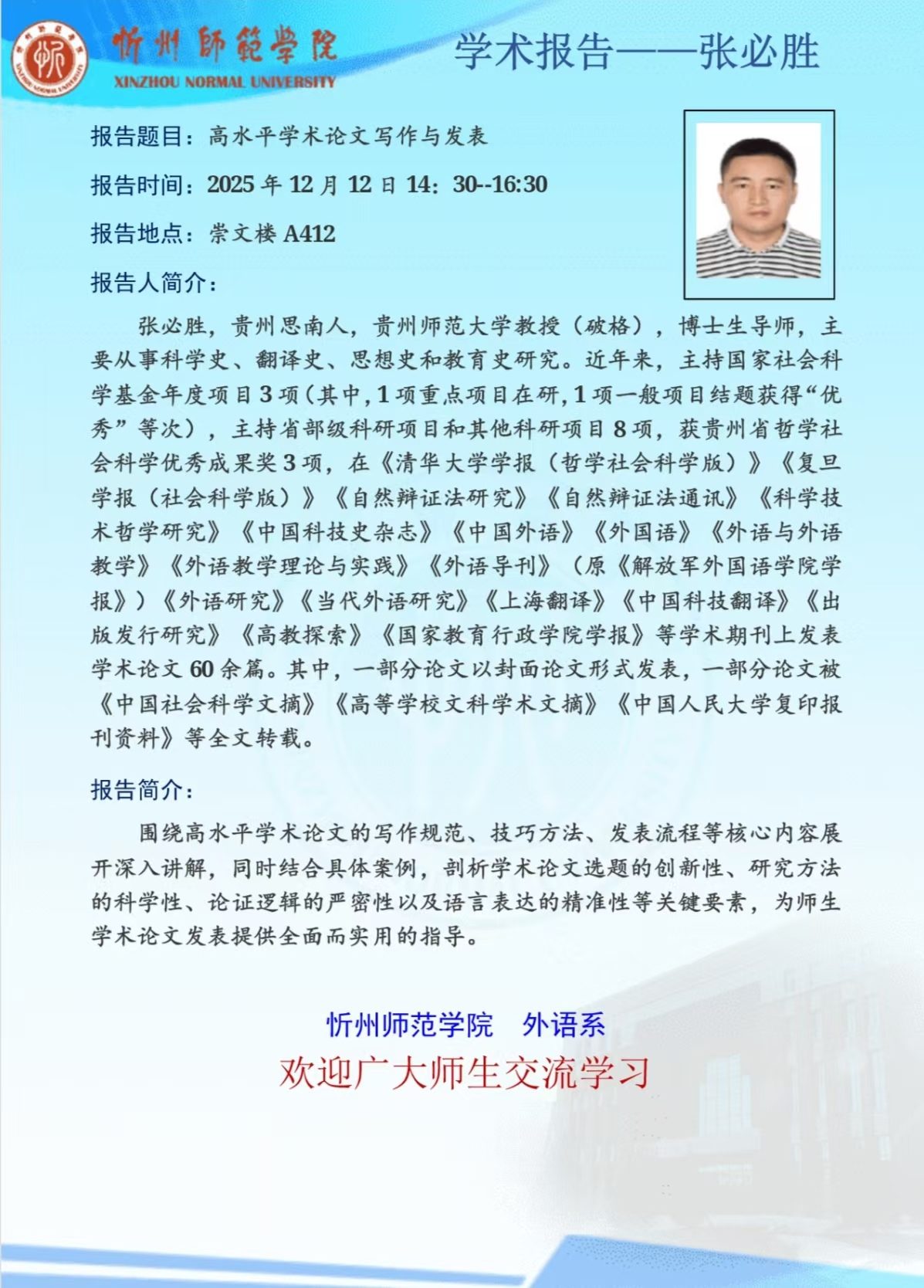 张必胜教授学术报告